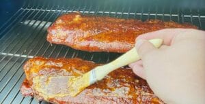 I like to foil my ribs depending on what I’m doing. So, after 2 hours lay out a piece of foil big enough that you can wrap the ribs. Place your ribs bone side down on your foil and add 3 or 4 pats of butter on top of them. You will be surprised at what the butter does, it is a natural tenderizer and adds a ton of flavor. Then, fold it up. Do it like a tent so you can open it and sauce them in about an hour.